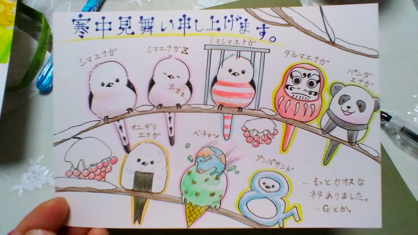 昔の職場の同僚に送った寒中見舞い。